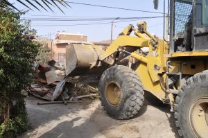 هذا وبعد معاينة جريدة الحدث الآن من عين المكان، فإن هذه الحملة قد أشرف عليها قائد الملحقة الإدارية أزلي مرفوقا برئيس الدائرة الأمنية 23 ايزكي وكذا رجال القوات المساعدة، و الانعاش الوطني، مستعينين بجرافات وشاحنات أزيلت بواسطتها مجموعة من الحدائق المنزلية المسيجة بالحديد والقصب والقصدير يفوق عددها أربعين حديقة.