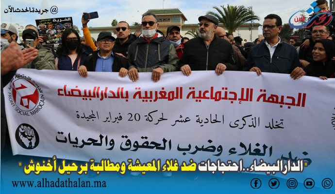 أقلام حرة الدارالبيضاء..احتجاجات ضد غلاء المعيشة ومطالبة برحيل أخنوش في 20 - فبراير - 2022 | 21:49 مساءً