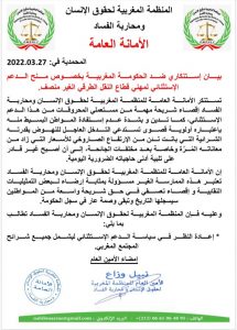 وعليه فإن المنظمة المغربية لحقوق الإنسان ومحاربة الفساد تطالب بما يلي: