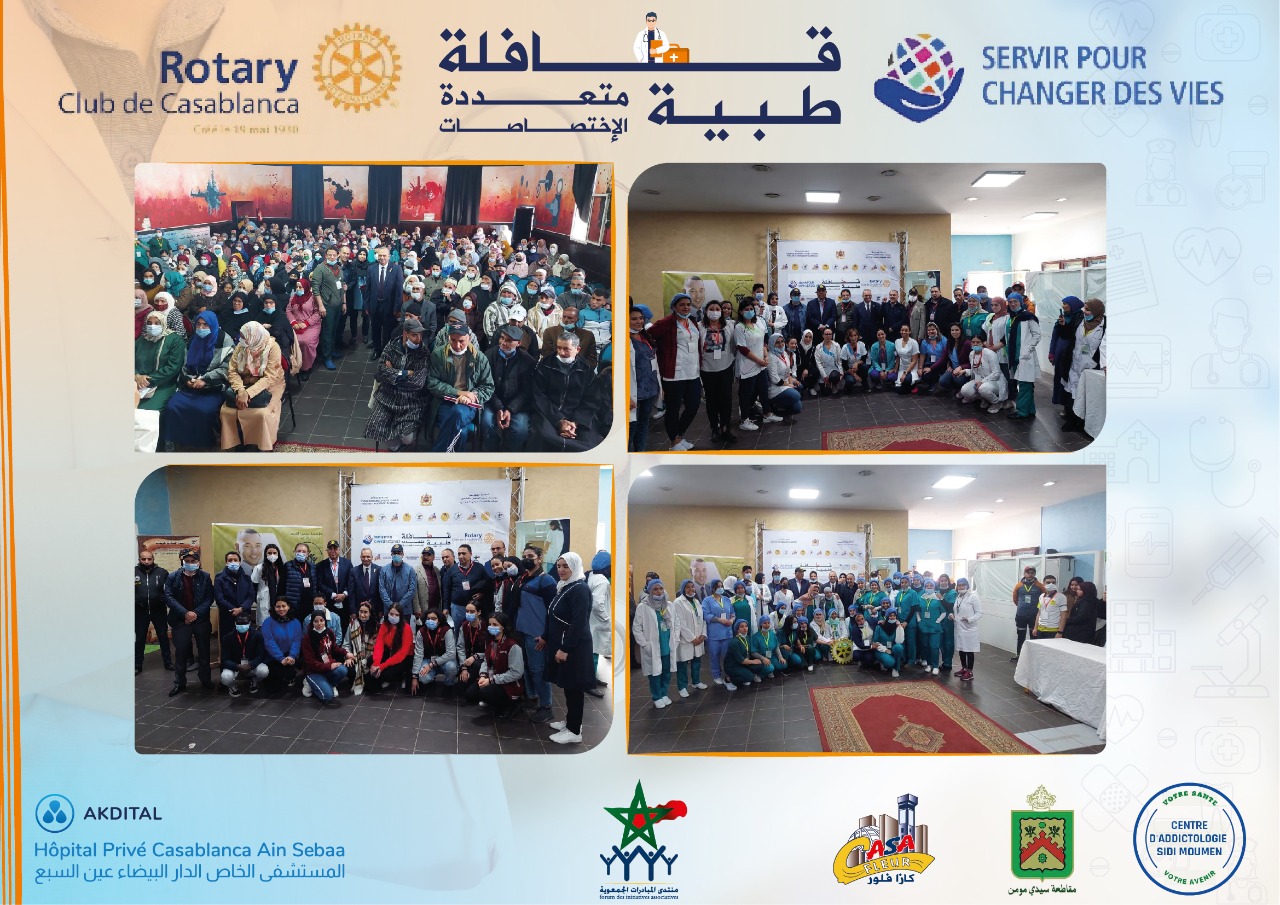 احتضن منتدى المبادرات الجمعوية سيدي مومن، بعمالة مقاطعات سيدي البرنوصي قافلة طبية متعددة التخصصات استفاد منها حوالي 973 شخصا ينتمون لأسر معوزة من مختلف احياء مقاطعتي سيدي مومن وسيدي البرنوصي. والتي تم فيها تقديم استشارات طبية في جميع التخصصات واجراء فحوصات لتشخيص الأمراض وتوزيع الأدوية بالمجان، حيث تندرج هذه المبادرة الإنسانية، التي نظمها نادي روتاري الدار البيضاء ” يوم السبت 26 مارس الجاري، بشراكة مع :