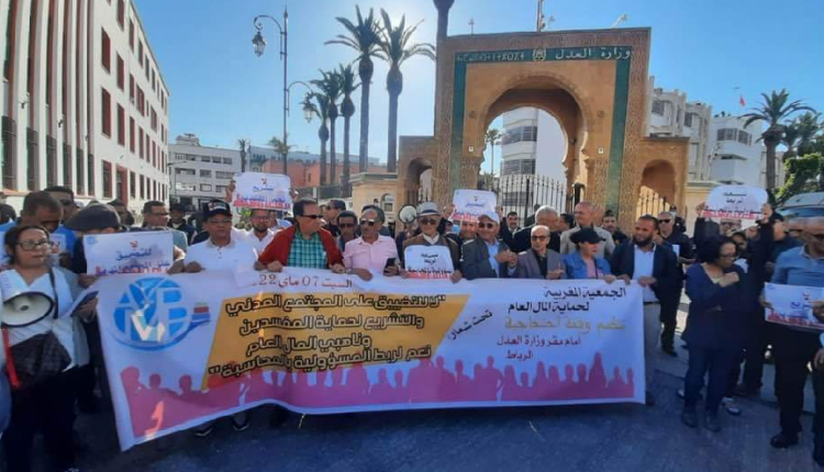 يومه السبت 7 ماي الجاري، وبمدينة الرباط، نظمت الجمعية المغربية لحماية المال العام، وقفة احتجاجية تنديدا بتوجه وزير العدل عبد اللطيف وهبي، الساعي لمنع الجمعيات الحقوقية العاملة في مجال حماية المال العام من وضع الشكاوى لدى النيابة العامة ضد ناهبي المال العام بالمؤسسات العمومية.