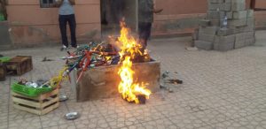 تمكنت السلطات المحلية بالملحقة الإدارية الحي الحسني بمقاطعة المنارة، اليوم الخميس رفقة المصالح الأمنية التابعة للدائرة 08 والدائرة 17 تحت إشراف رئيس المنطقة الأمنية، من حجز مئات القنينات والأدوات المستخدمة في إعداد مادة الشيشة، خلال حملة مكثفة شنتها ضد مقاهي “الشيشة”، بمنطقة الضحى، أبواب مراكش، والحي العسكري، كما جرى خلال هذه المداهمات إتلاف النرجيلات عن طريق الحرق بمقر ملحقة الحي الحسني.