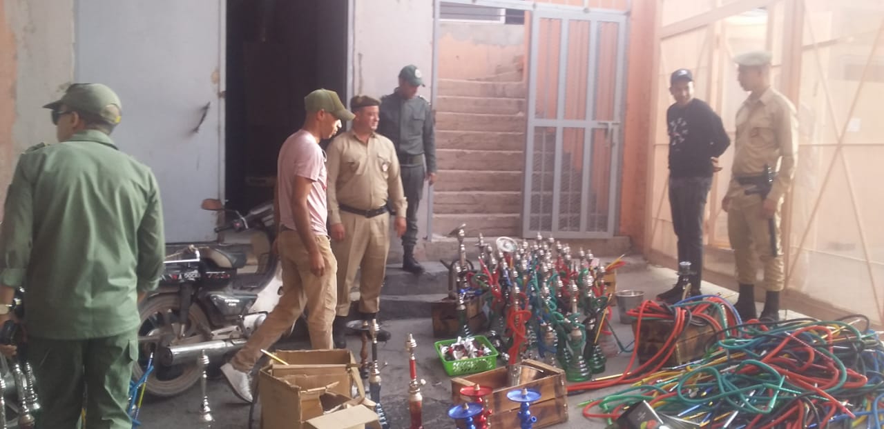 مراكش .. حملة ضد مقاهي الشيشة بالحي الحسني بمقاطعة المنارة تسفر عن حجز أزيد من 162 نرجيلة وكمية كبيرة من مستلزمات إعدادها +صور