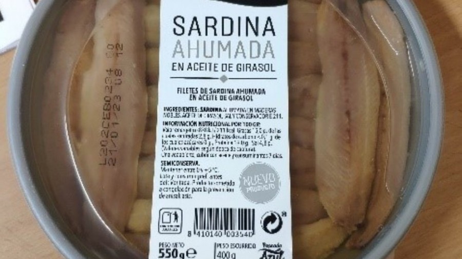 ودعت الوكالة لسحب علب شرائح سمك السردين بزيت عباد الشمس تحت العلامة التجارية “The Menu” بوزن 550 غرام، وهي الدفعة المرقم L202CEB0 234 60 وبتاريخ استهلاك تفضيلي 01/21/2023، محذرة من استهلاكها.