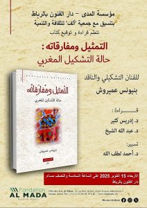 تنظم مؤسسة المدى – دار الفنون بالرباط، بتنسيق مع جمعية “ألف” للثقافة والتنمية، مساء يوم الأربعاء 15 أكتوبر 2025 على الساعة السادسة والنصف، لقاءً ثقافيا متميزا لتقديم وقراءة كتاب جديد يحمل عنوان «التمثيل ومفارقاته: حالة التشكيل المغربي»، وهو أحدث إصدار للفنان التشكيلي والناقد بنيونس عميروش.