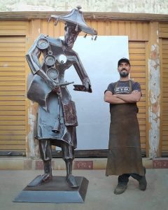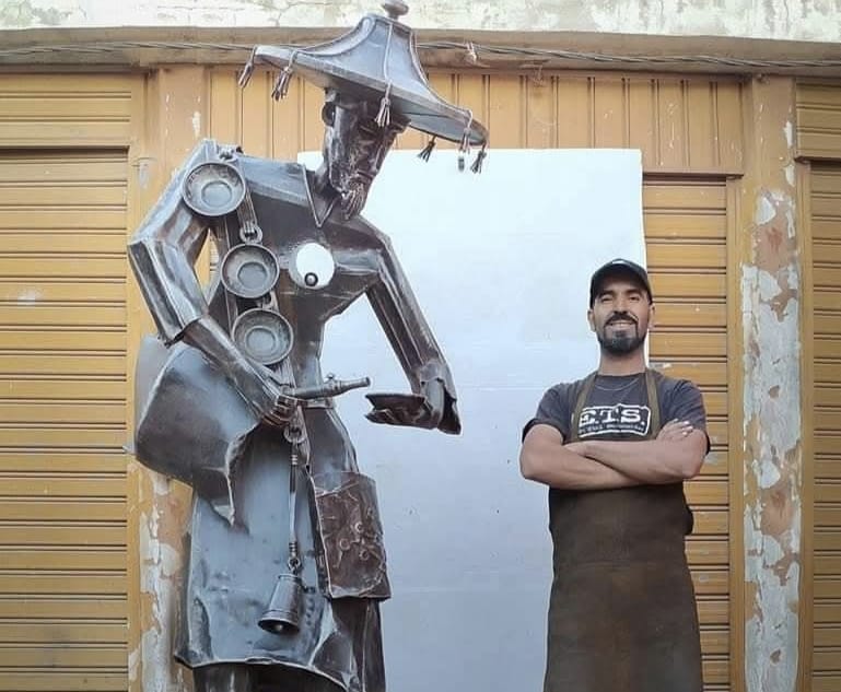 مجسم فني يستحضر صورة “الكرّاب المغرب”، ذاك الرجل البسيط الذي يحمل قربته الجلدية على كتفه، ويجوب الأزقة والأسواق، وهو يسقي العطشى في عز الحر.