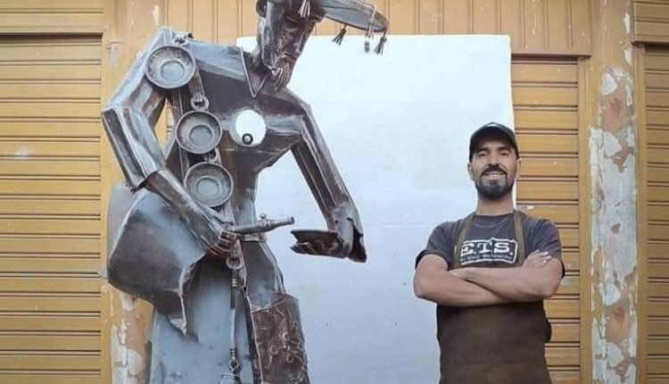 الفنان الأسفي عزيز علوان ينحث مجسما ويعطيه عنوان : الكرّاب.. ذاكرة الماء وروح السخاء