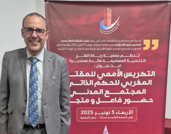 من جهته، أكد السيد بدرالدين بنعمرو الكاتب العام للجمعية، أن دور المجتمع المدني اليوم يتجاوز التوعية الداخلية ليشمل الدبلوماسية الموازية، من خلال بناء جسور التواصل مع مراكز القرار والمنظمات غير الحكومية الدولية. وشدد على أن جمعية رباط الفتح، بصفتها فاعلاً جمعوياً عريقاً، تلتزم بنقل حقيقة التنمية والديمقراطية التي تشهدها الأقاليم الجنوبية، وبمواجهة السرديات المغلوطة بالحقائق التاريخية والقانونية.